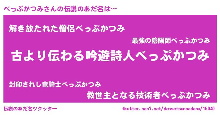| 意味不明あだ名 | 『住所不定無職べっぷかつみ(6歳)』 |