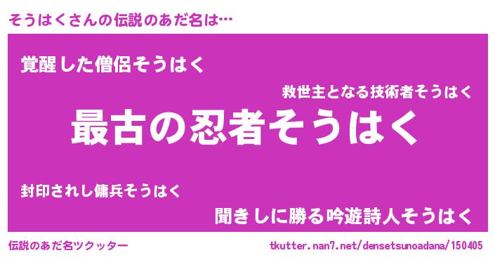 | ファンタジー風あだ名 | 『ゼソウトゥ』『エターナルソウハクー』 |
