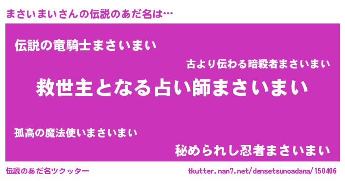 | ヒーロー風カッコイイあだ名 | 『天空の使者まさいまい』『仮面マサダー』 |