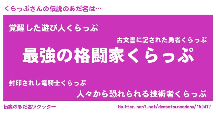 | 意味不明あだ名 | 『くらっぷフォーエバー』 |