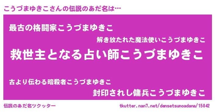 | 意味不明あだ名 | 『眠気覚ましガムこうづまゆきこ味』 |