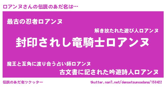 | ヒーロー風カッコイイあだ名 | 『スーパーロアンヌ』『最強戦士ロアンヌ』 |