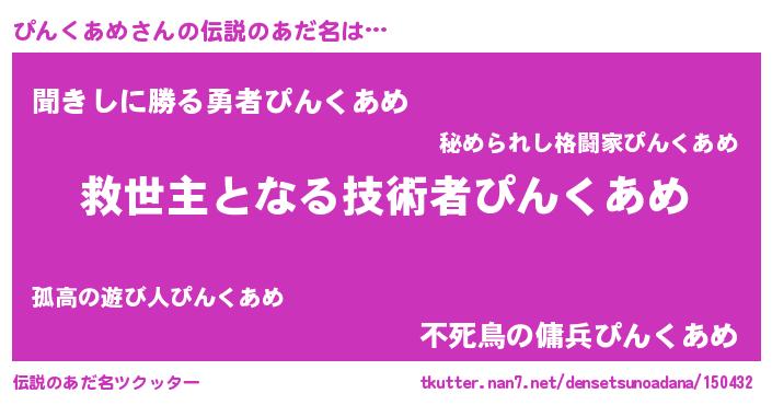 | ヘコむあだ名 | 『ぴんくあめ(笑)』『ぴんっふぃ~』 |