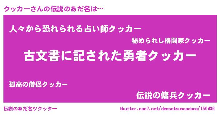| 意味不明あだ名 | 『永久保存クッカー』『自称クッカー』 |