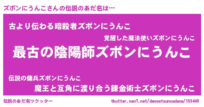 | ファンタジー風あだ名 | 『エターナルズボンニウンコー』 |