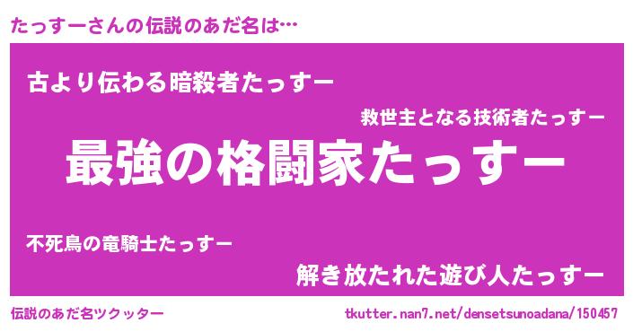 | ヒーロー風カッコイイあだ名 | 『ウルトラたっすーマン』『ネオタッスー』 |