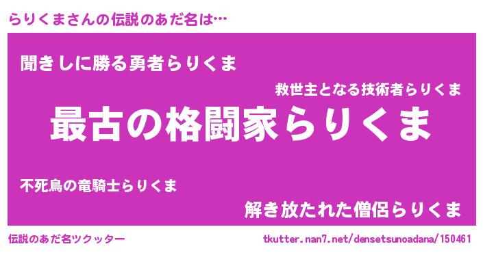 | ファンタジー風あだ名 | 『エターナルラリクマー』 |