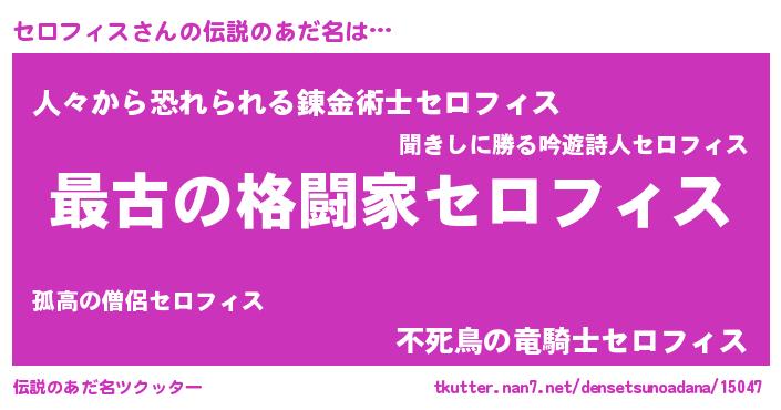 | 女子向けラノベタイトル風あだ名 | 『闇のセロフィス』 |