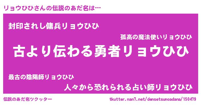 | ヘコむあだ名 | 『リョウひひ(苦笑)』『リョにゅー』 |