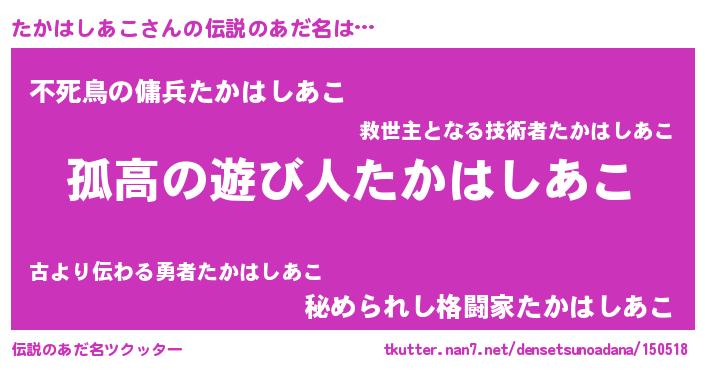 | 男性向けラノベタイトル風あだ名 | 『ダンジョンにたかはしあこを求めるのは間違っているだろうか』 |