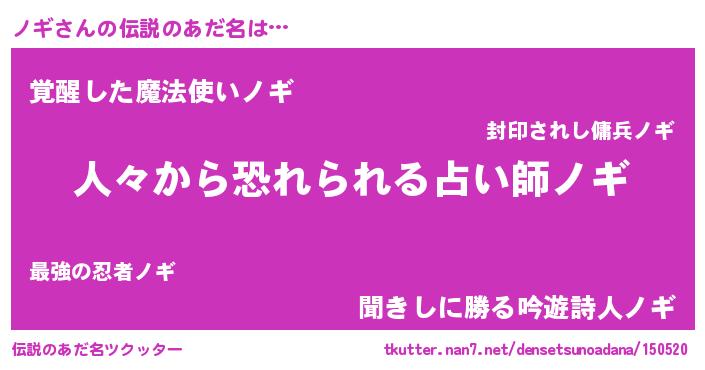 | 意味不明あだ名 | 『めかぶ科ノギ属』『とにかく怪しいノギ』 |