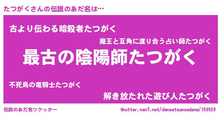 | 男性向けラノベタイトル風あだ名 | 『うちの娘の為ならば、俺はもしかしたらたつがくも倒せるかもしれない。』 |