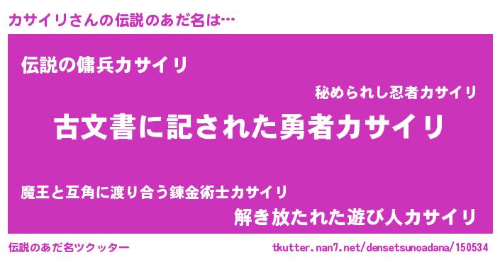 | ヒーロー風カッコイイあだ名 | 『ネオカサイリ』『スーパーカサイリ』 |