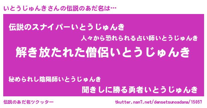 | 男性向けラノベタイトル風あだ名 | 『いとうじゅんきの嫁は女の子じゃないと思った?』 |
