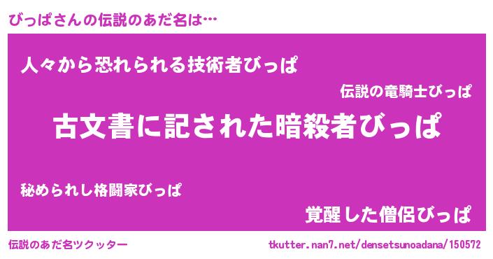 | ヒーロー風カッコイイあだ名 | 『ネオビッパ』『正義の使者びっぱ』 |