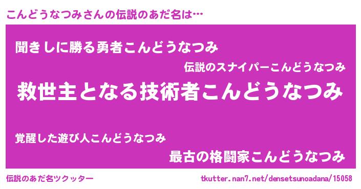 | 女子向けラノベタイトル風あだ名 | 『死神こんどうなつみの再婚』 |