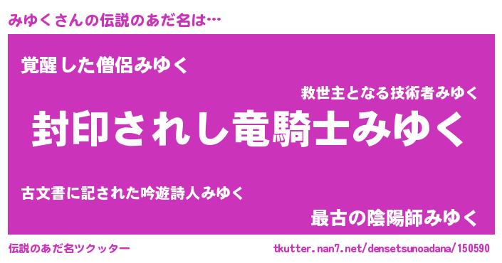 | 胡散臭い通販商品みたいなあだ名 | 『あなたにだけ特別に提供する100年もののヴィンテージワイン…その名も「みゆく」』 |