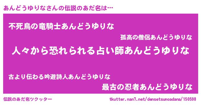 | 意味不明あだ名 | 『眠気覚ましガムあんどうゆりな味』 |
