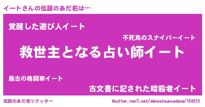 | 男性向けラノベタイトル風あだ名 | 『この素晴らしい世界にイートを!』 |