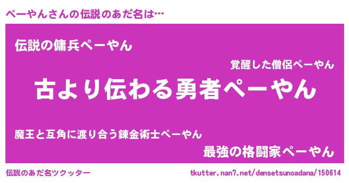 | 男性向けラノベタイトル風あだ名 | 『はたらくぺーやんさま!』 |