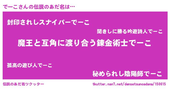| 女子向けラノベタイトル風あだ名 | 『でーこ恋絵巻』『首の姫と首なしでーこ』 |