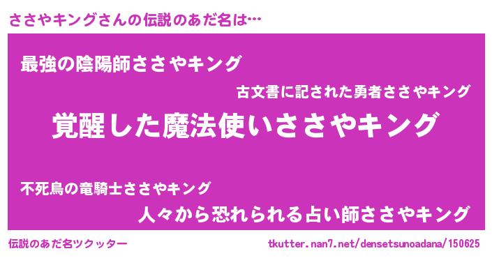 | 意味不明あだ名 | 『とにかく怪しいささやキング』 |