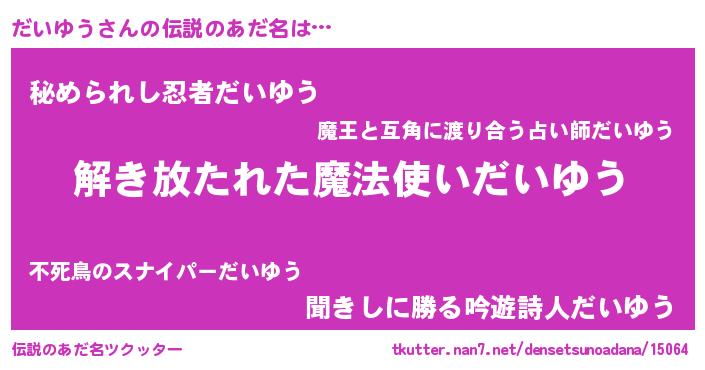 | 女子向けラノベタイトル風あだ名 | 『闇のだいゆう』 |