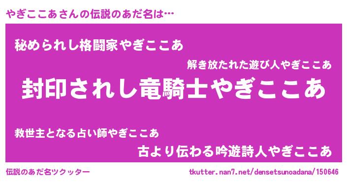 | ヒーロー風カッコイイあだ名 | 『スーパーヤギココア』『ネオヤギココア』 |