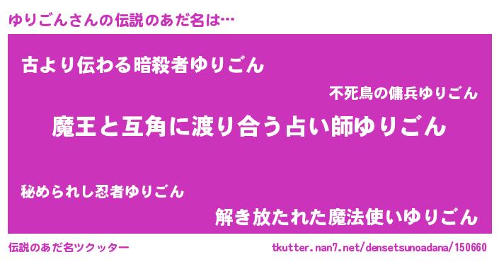 | 意味不明あだ名 | 『自称ゆりごん』『永久保存ゆりごん』 |