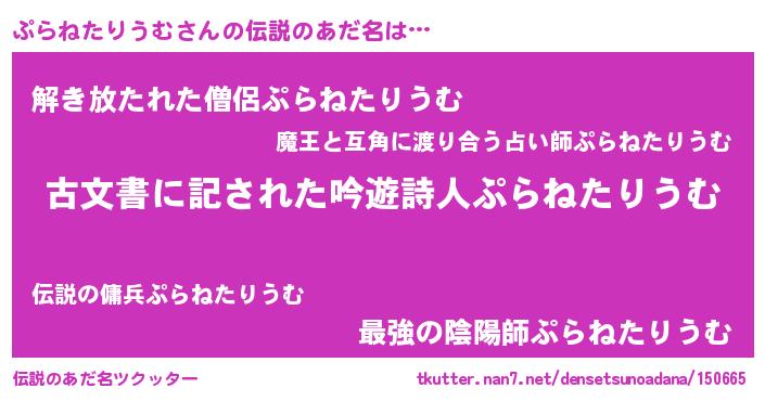 | ヘコむあだ名 | 『ぷらねたりうむ(小並感)』『ぷらっ子』 |