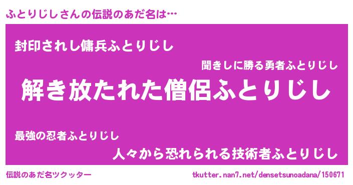 | 意味不明あだ名 | 『とにかく怪しいふとりじし』 |