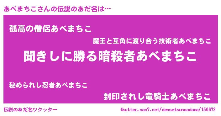 | ヒーロー風カッコイイあだ名 | 『ウルトラ戦士アベマチコ』 |