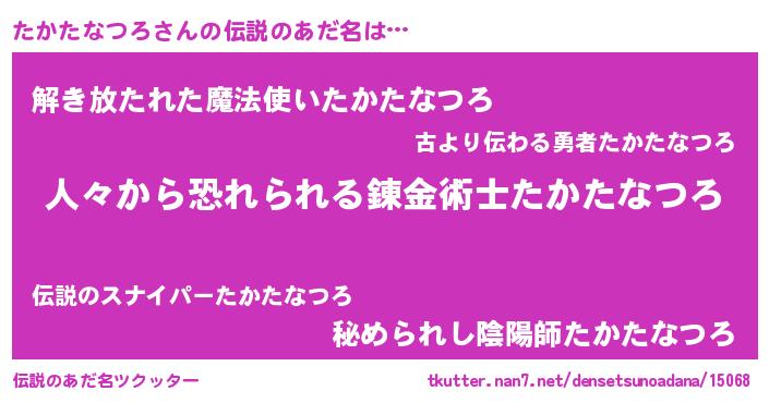 | ヒーロー風カッコイイあだ名 | 『正義の使者たかたなつろ』 |