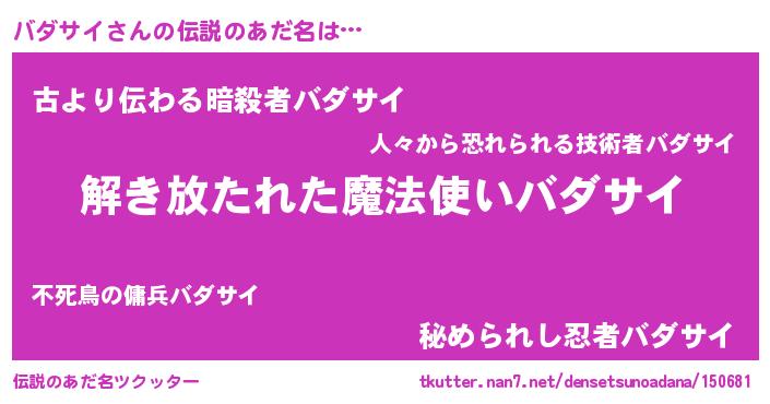 | ヒーロー風カッコイイあだ名 | 『銀牙騎士バダ』『ネオバダサイ』 |