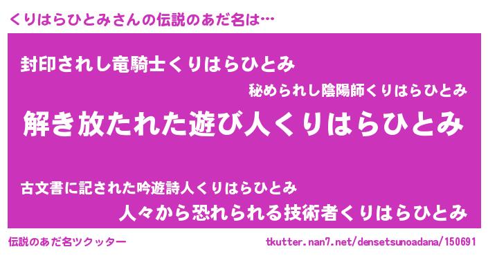 | 意味不明あだ名 | 『とにかく怪しいくりはらひとみ』 |