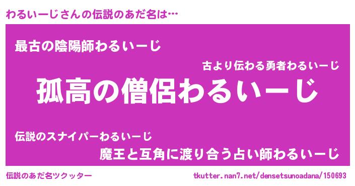 | ヒーロー風カッコイイあだ名 | 『魔戒騎士ワル』『最強戦士ワルイージ』 |