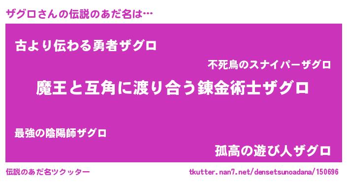 | ヘコむあだ名 | 『ザグロ(震え声)』『ザグぷりん』 |
