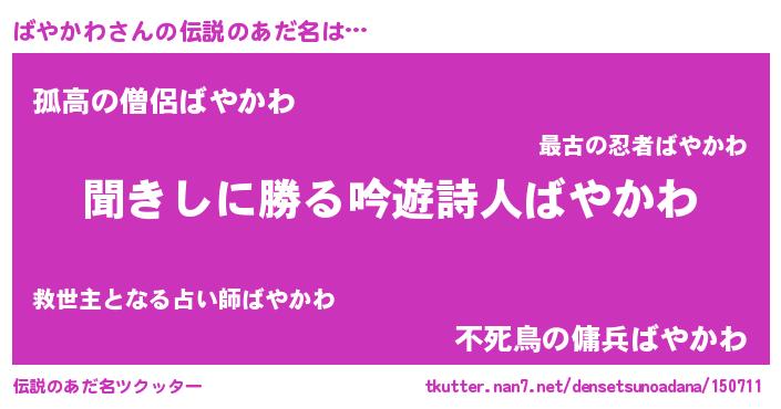 | 男性向けラノベタイトル風あだ名 | 『ばやかわという概念が存在しない退屈な世界 』 |