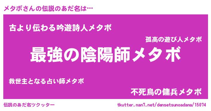 | ファンタジー風あだ名 | 『エターナルメタボー』『メタディッシュ』 |
