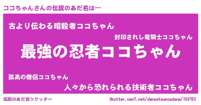 | ファンタジー風あだ名 | 『エターナルココチャンー』 |