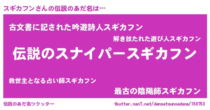 | 胡散臭い通販商品みたいなあだ名 | 『必ず成功する霊験あらたかなお札…その名も「スギカフン」』 |