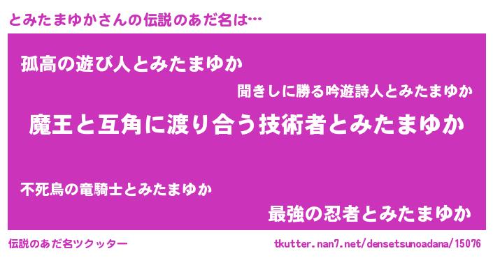 | 肩書あだ名 | 『とみたまゆか船長』『とみたまゆか閣下』 |