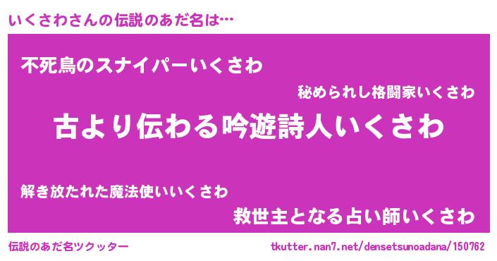 | ヘコむあだ名 | 『いくさわ(小並感)』『いくもー』 |