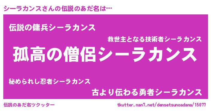 | 胡散臭い通販商品みたいなあだ名 | 『信頼と実績のネックレス…その名も「シーラカンス」』 |