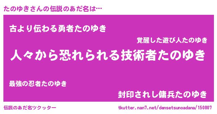 | ヒーロー風カッコイイあだ名 | 『仮面タノダー』『愛の使者たのゆき』 |