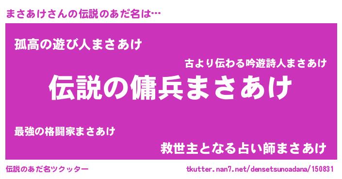 | 意味不明あだ名 | 『めかぶ科まさあけ属』『自称まさあけ』 |