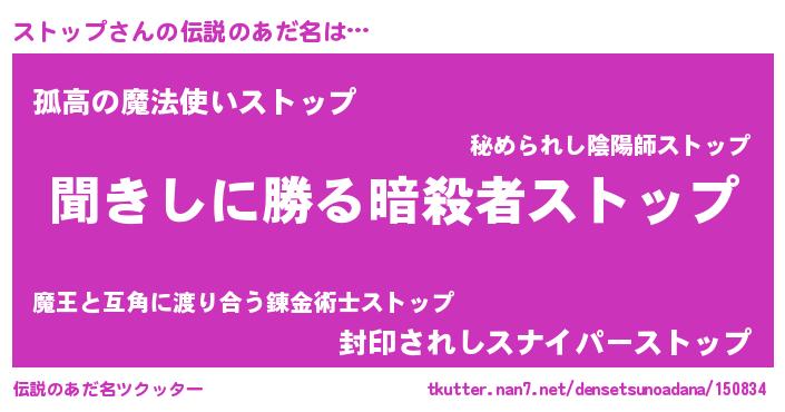 | 意味不明あだ名 | 『永久保存ストップ』『自称ストップ』 |