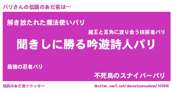 | 意味不明あだ名 | 『自称パリ』『永久保存パリ』 |
