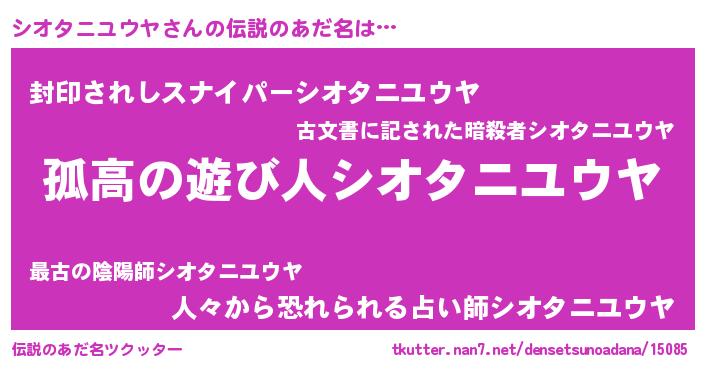 | ポケモン風あだ名 | 『ヒシオタニユウヤ』『シオチュウ』 |