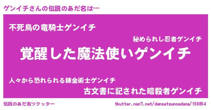 | ヒーロー風カッコイイあだ名 | 『究極戦士ゲンイチ』『仮面ゲンダー』 |